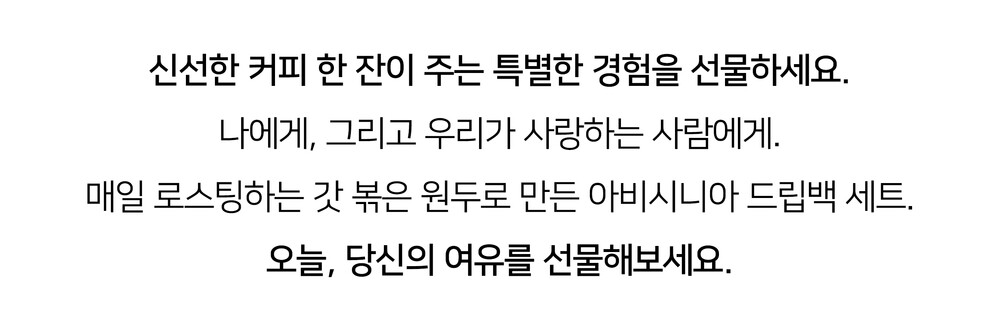 아비시니아의 모든 원두 제품은 로스팅 후 7일 이내에 판매합니다.